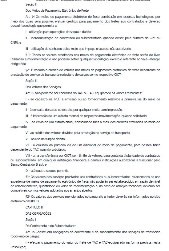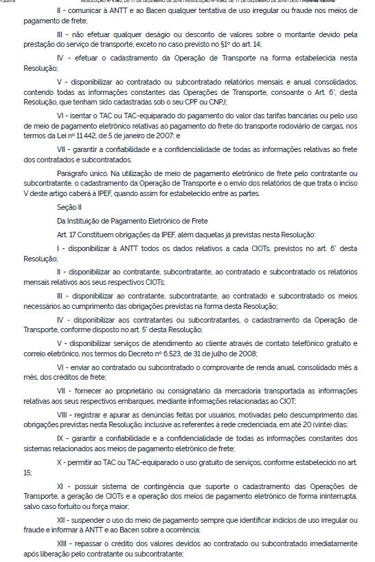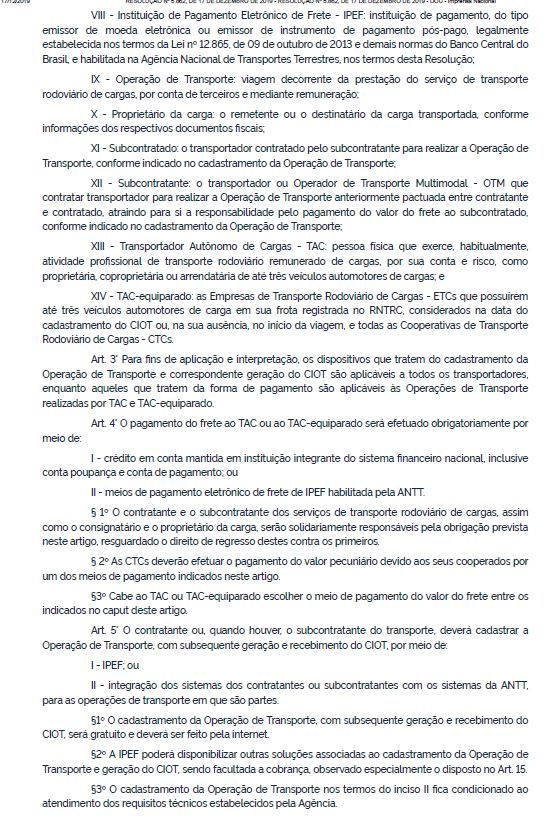 Esta medida é o resultado de muita pressão dos caminhoneiros autônomos, que nas audiências públicas e em reuniões do Fórum Permanente do TRC em Brasília, queixavam-se de que a Tabela de Pisos Mínimos de Fretes não estava sendo cumprida e que a solução seria a fiscalização eficiente por parte da ANTT, através do CIOT, ou seja, agora a agência terá como fiscalizar o pagamento dos Pisos Mínimos de Frete eletronicamente. Esta fiscalização abrangerá o cumprimento da Política de Pisos Mínimos, tanto no que se refere às transportadoras que subcontratam os autônomos, quanto aos embarcadores que contratam as transportadoras.