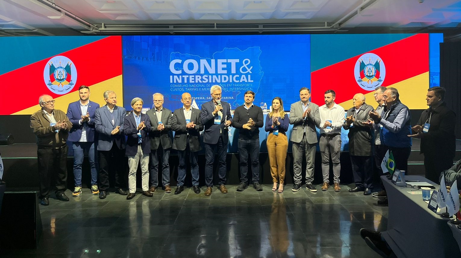 A organização do CONET&Intersindical homenageou o Rio Grande do Sul pela enchente histórica que ocorreu no final de abril e início de maio de 2024, considerada a maior catástrofe climática do estado. O povo gaúcho e toda a cadeia produtiva do RS foram afetados, impactando diretamente o setor de transporte e logística. A segunda edição