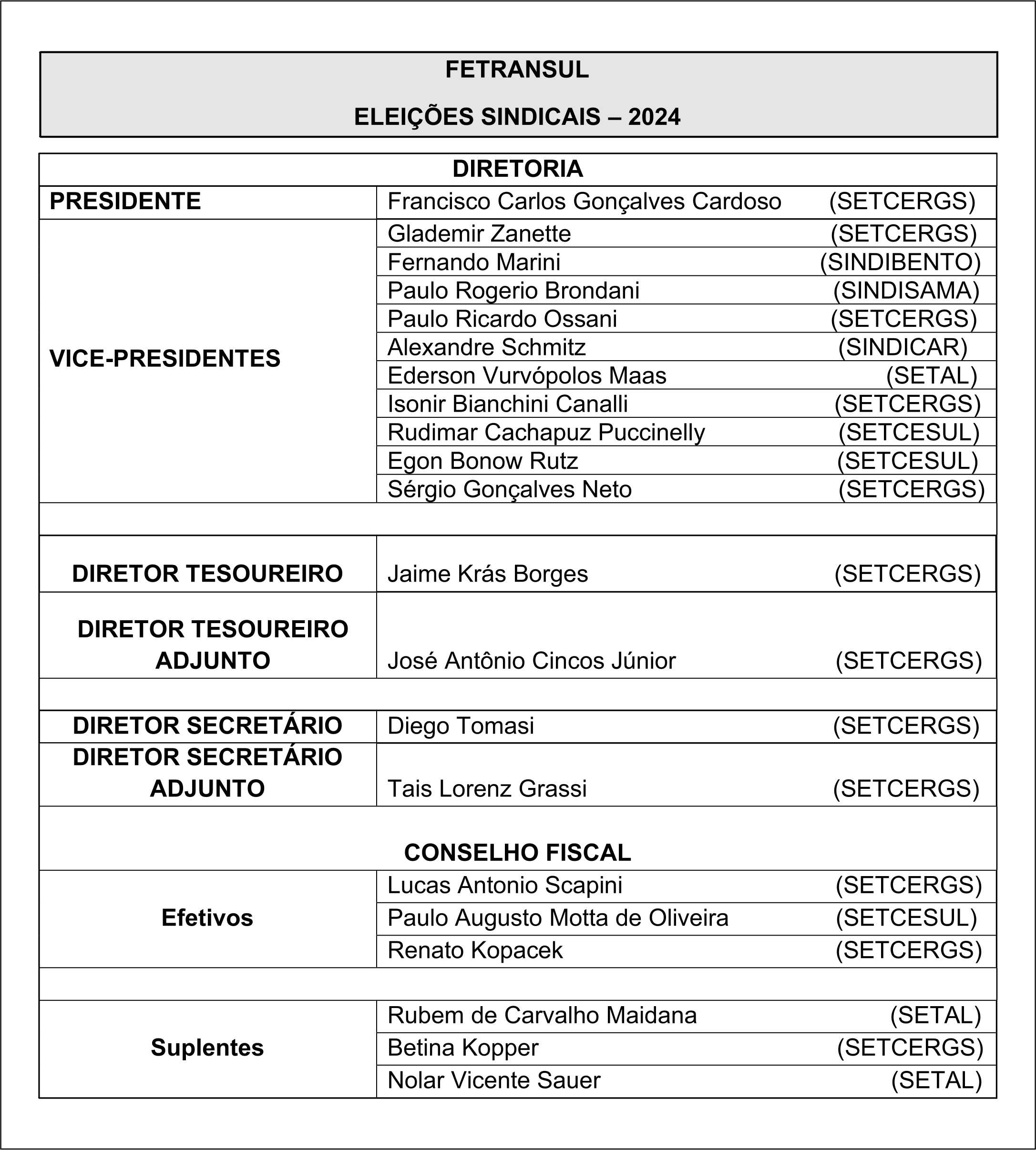Francisco Cardoso é eleito presidente da FETRANSUL