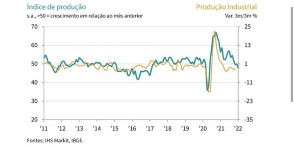 os participantes da pesquisa associaram a queda à nova onda de covid-19. A produção apresentou queda nos segmentos de bens intermediários e de consumo, mas aumentou para os fabricantes de bens de produção.