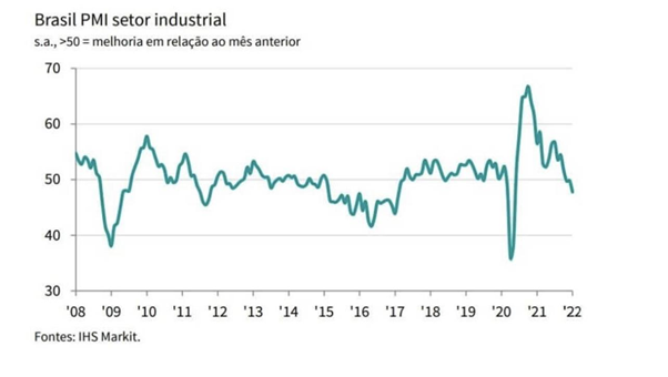 A atividade industrial brasileira registrou a contração mais rápida dos últimos 20 meses, pressionada pelas pressões elevadas sobre os preços, poder de compra limitado dos consumidores e as consequências da nova onda de covid-19 provocada pela variante Ômicron. Os dados são relativos ao Índice de Gerentes de Compras (PMI, na sigla em inglês), que é divulgado pela IHS Markit.