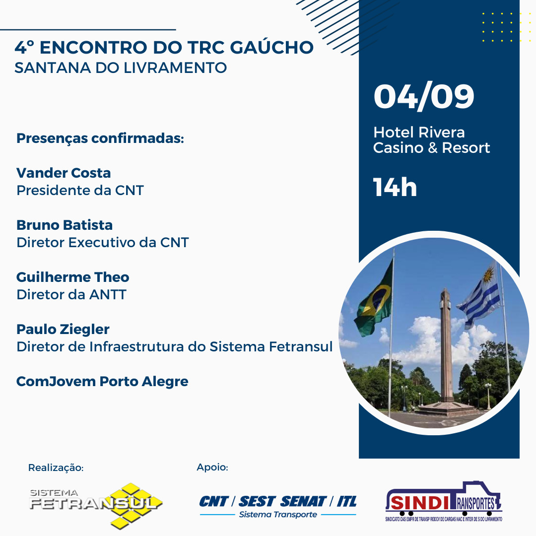 No dia 04 de setembro o 4º Encontro do TRC Gaúcho irá reunir lideranças do transporte e painelistas especialistas no setor.