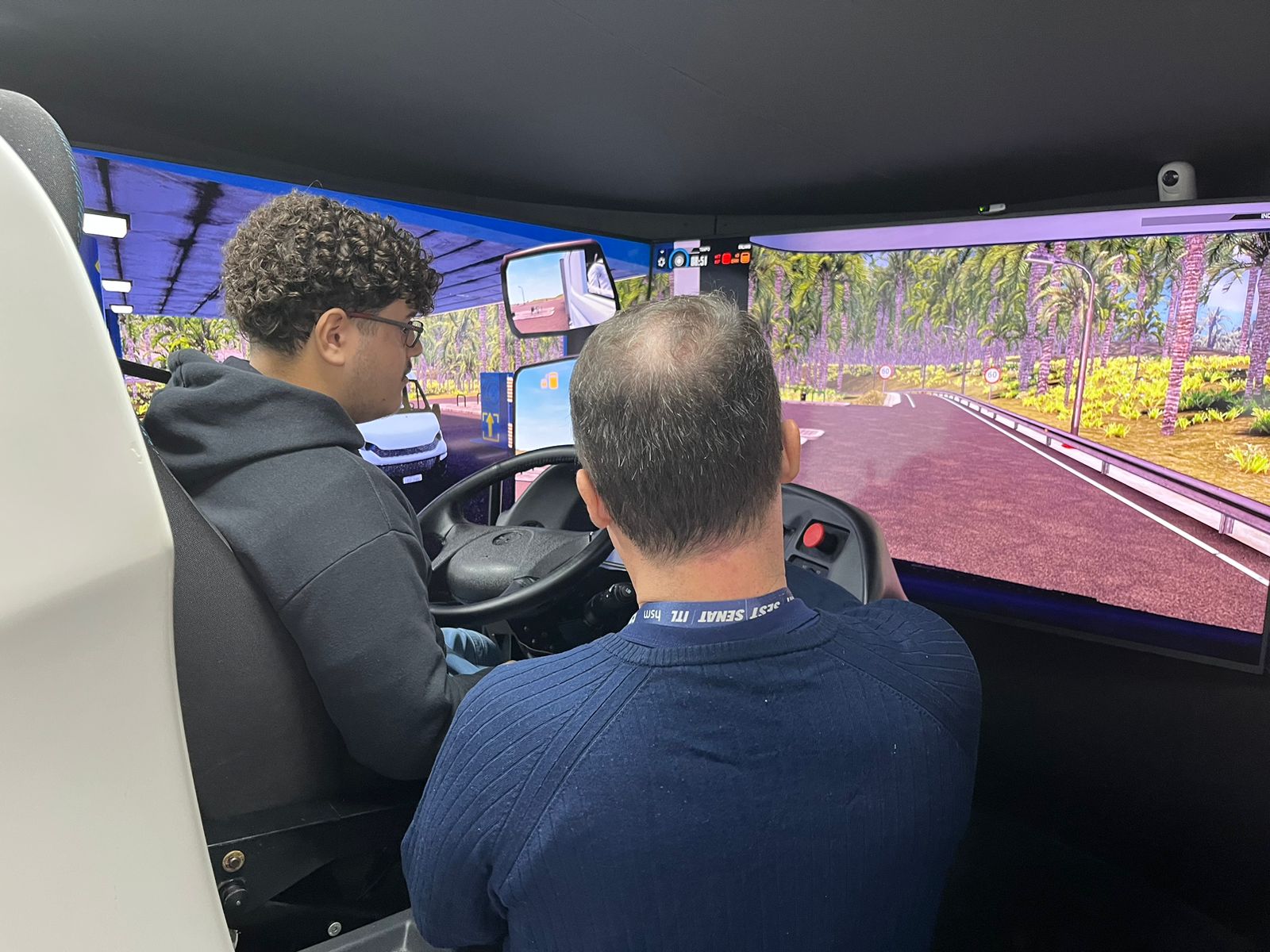 O simulador de direção também foi atração entre os jovens. O equipamento possui tecnologia de ponta a serviço da qualificação profissional para o transporte. A prática no simulador faz parte do treinamento de motoristas de cargas e de passageiros e dá aos alunos experiência para enfrentar desafios reais da profissão.
