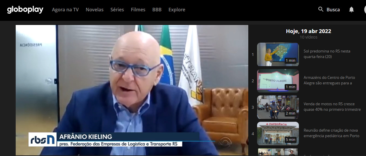 A entrevista faz parte de uma reportagem que abordou a concessão de rodovias gaúchas por parte do governo do Estado para a iniciativa privada e o consequente aumento de pedágios. Além de Afrânio Kieling, prefeitos da região da Serra, que faz parte do primeiro bloco de concessões, também criticaram o aumento, considerado acima do necessário. Kieling deixou claro que a entidade não é contra pedágios, mas que valores altos, inevitavelmente, afetarão não só o setor logístico rodoviário, mas toda a sociedade. Assista a reportagem na íntegra, veiculada nesta terça-feira (19) pelo telejornal RBS NOTÍCIAS, no link abaixo: https://globoplay.globo.com/v/10499276/