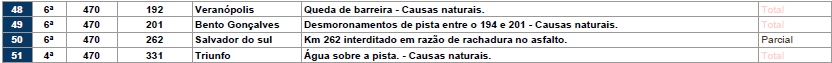 - A BR-116 entre Guaíba e o sul do Estado e a BR-290 entre o acesso a Charqueadas/RS 401 e a fronteira estão normais.