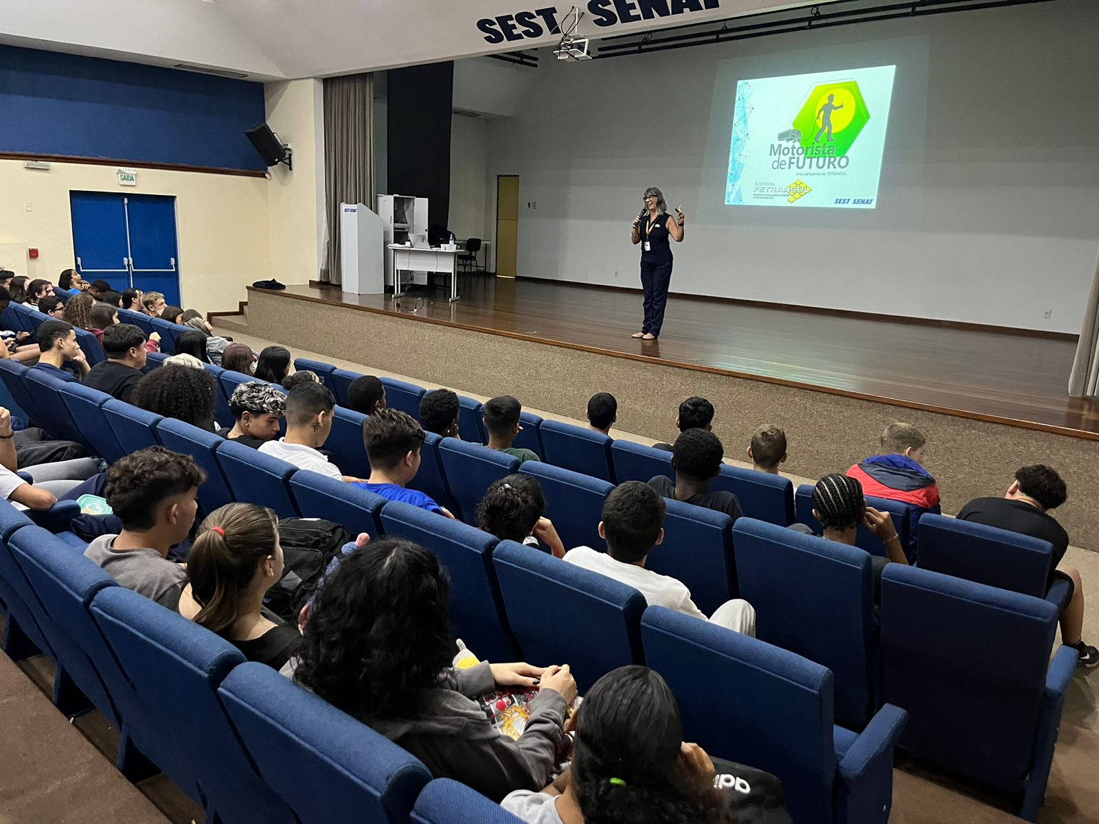 O Programa Motorista de Futuro, realizou a primeira ação de 2024 no dia 06 de março, na unidade do SEST SENAT de Porto Alegre. Aproximadamente 180 alunos da Turma de Jovem Aprendiz da unidade foram recepcionados.