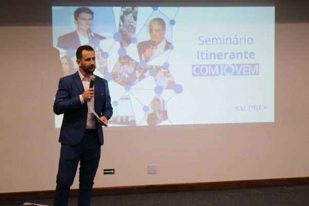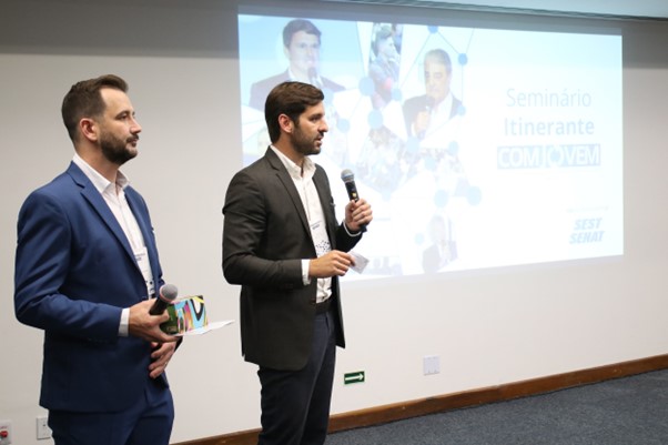 Em sua fala inicial, Geovani relembrou sua trajetória no setor de transportes e também como foi convidado para participar da COMJOVEM, o que segundo ele foi uma grande oportunidade e tem sido, para poder se desenvolver ainda mais como empresário do setor.
