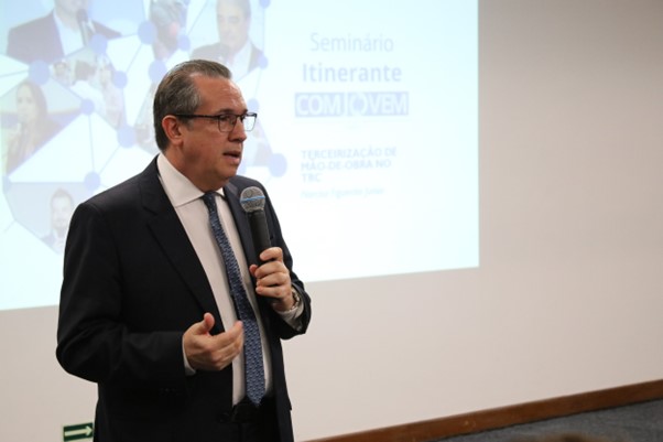 Dando continuidade, o assessor jurídico da NTC&Logística, Narciso Figueirôa Júnior falou a contratação do transportador autônomo de cargas após o julgamento da ADC 48 e os aspectos jurídicos da terceirização de mão de obra no TRC e as cautelas que devem ser tomadas pelas empresas para redução do passivo trabalhista neste tema.